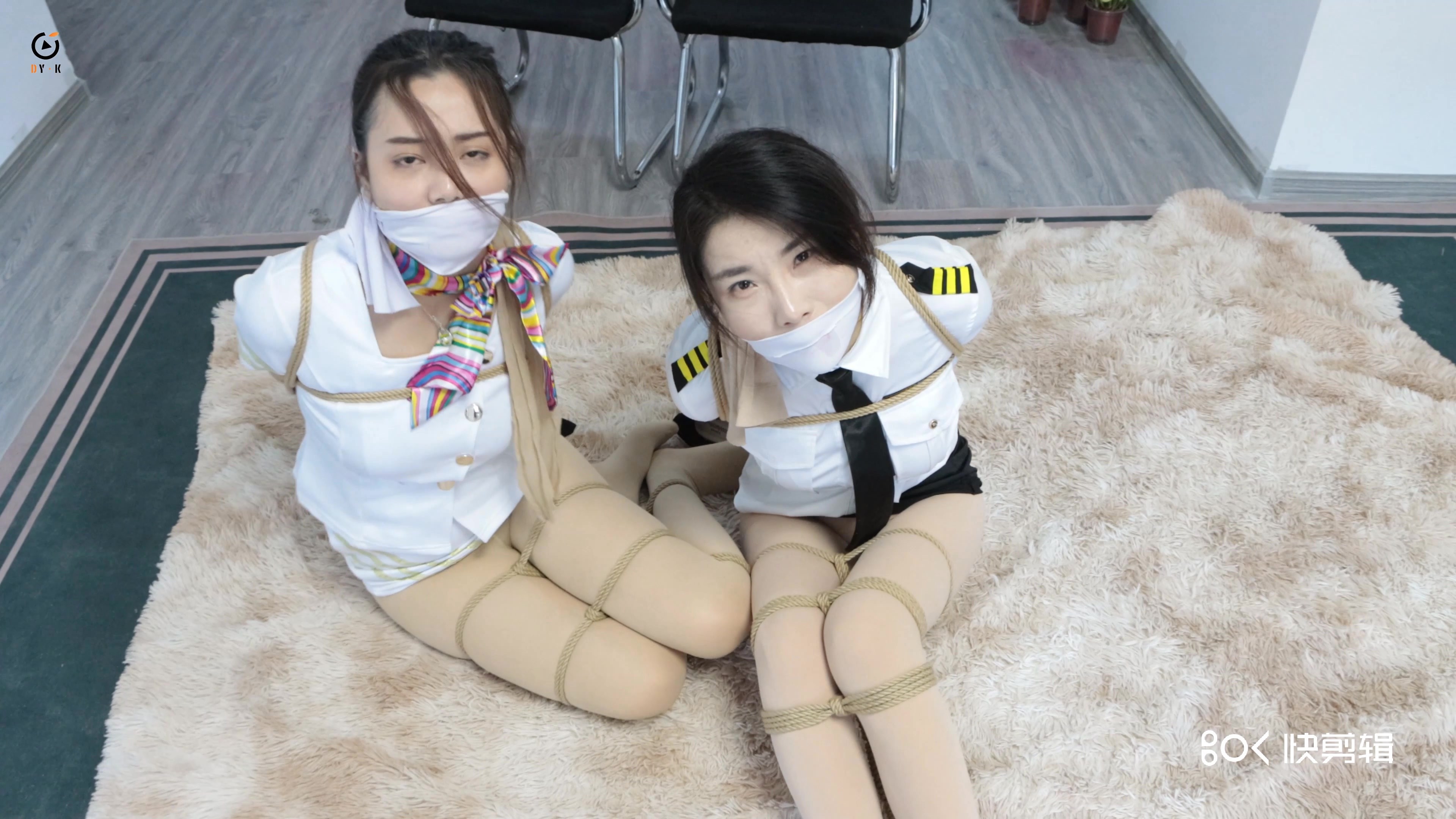 主持人:这次的自救讲座,我们为女性朋友们演示,当两个人被同时捆绑的时候,如何巧妙的相互配合、脱离险境,下面请我的搭档入场.....