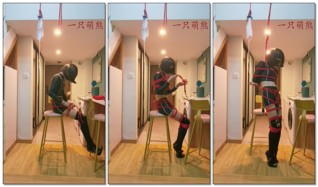 【一只萌熊】自缚16cm高跟电击肛钩头套口球绑腿脚铐拿钥匙