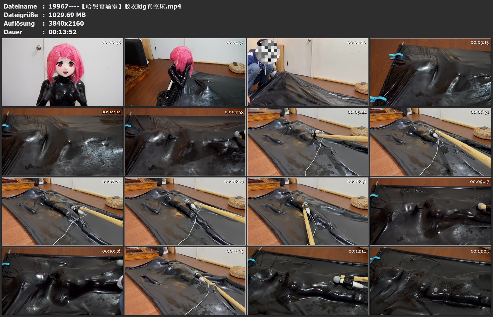 贴身的胶衣,头壳下一样被乳胶头套包覆住,塞入电击玩具在不可描述的位置,再被真空床所密封,失去一切视野和动作的能力,感官只剩下上方的[X_X]和后方来自体内的电击抽动