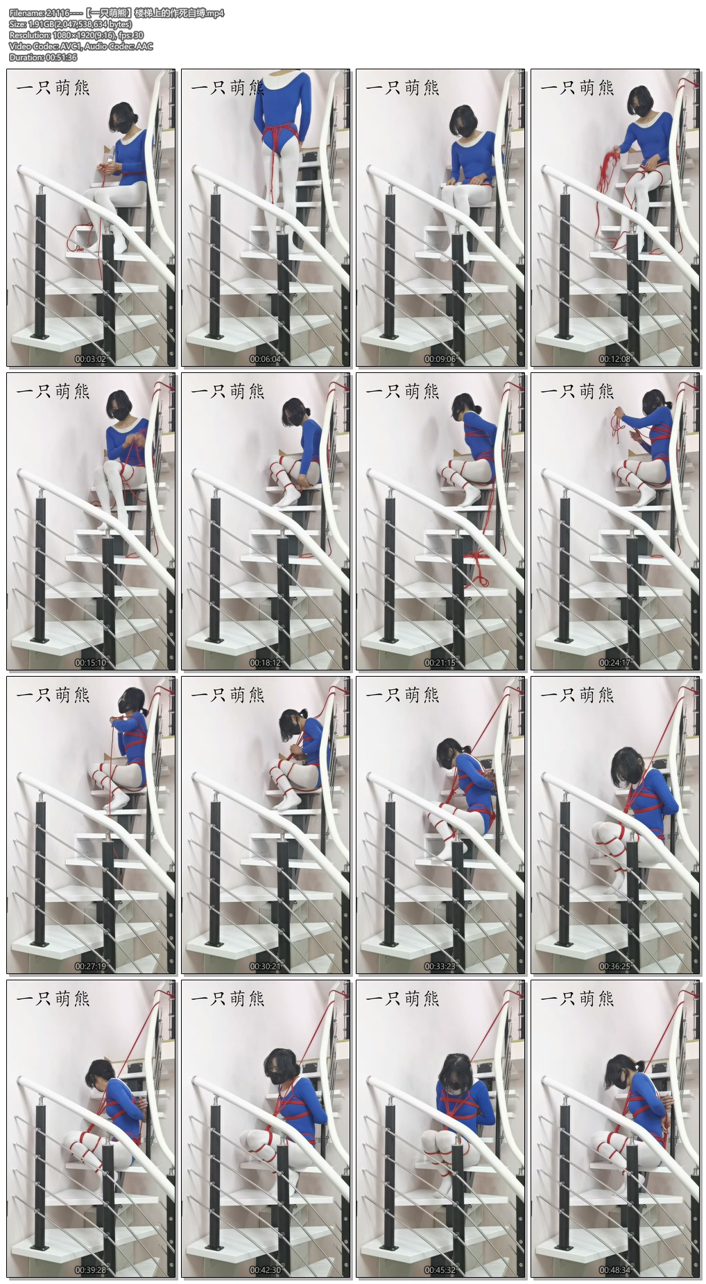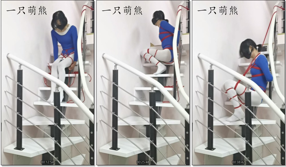 这次绑一个作死小自缚,在楼梯上绑上胸缚并腿和股绳,然后为了让自己下去之后不好上来,再把脚腕跟股绳连接在一起不能站起来,然后上面吊来绳子下来穿过去背后绳子做个圈再跟股绳那边脚腕的绳子绑一起,然后双手伸进去,从楼梯下来手就被收紧了,我想到了下去容易上来难,但是根本没想到压根上不去~~最后好在绳结打在我垫脚勉强能够到的地方,然后还是费了好大的劲才解开~~,要是最后打结在脚腕上直接就解不开了~大家要玩的话一定要注意安全