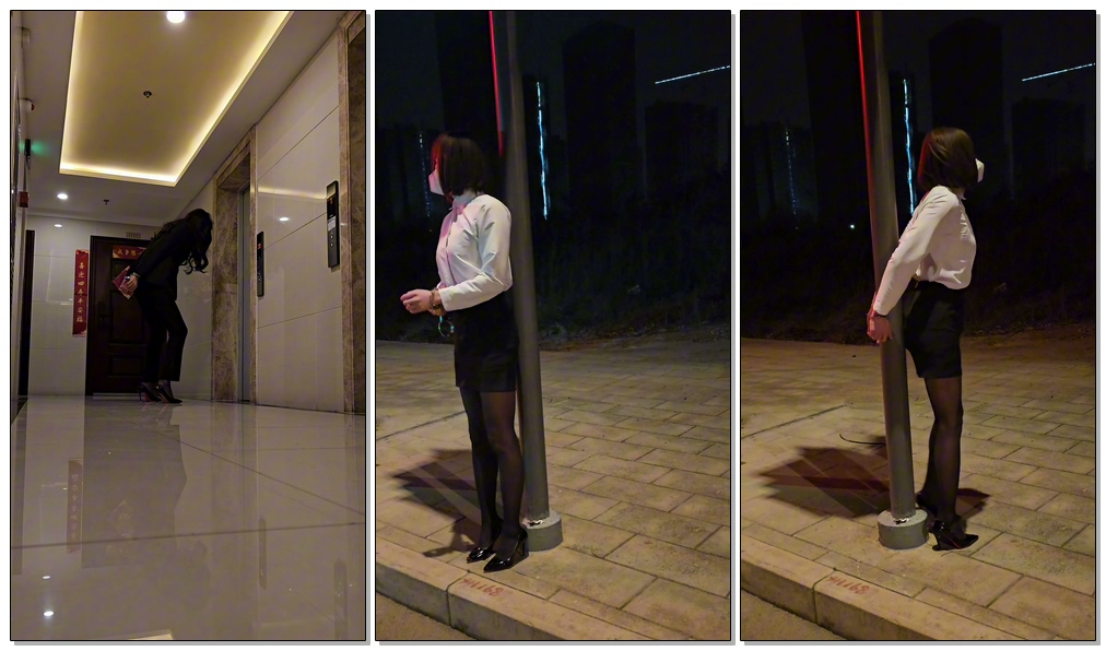 【Sub咔咔】OL楼道西装手铐+蒙眼背铐在红绿灯杆上SubM