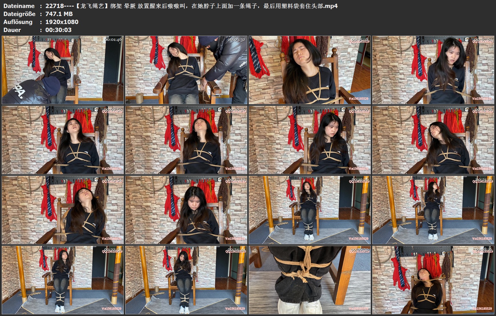 【龙飞绳艺】绑架 晕厥 放置醒来后嗷嗷叫,在她脖子上面加一条绳子,最后用塑料袋套住头部
