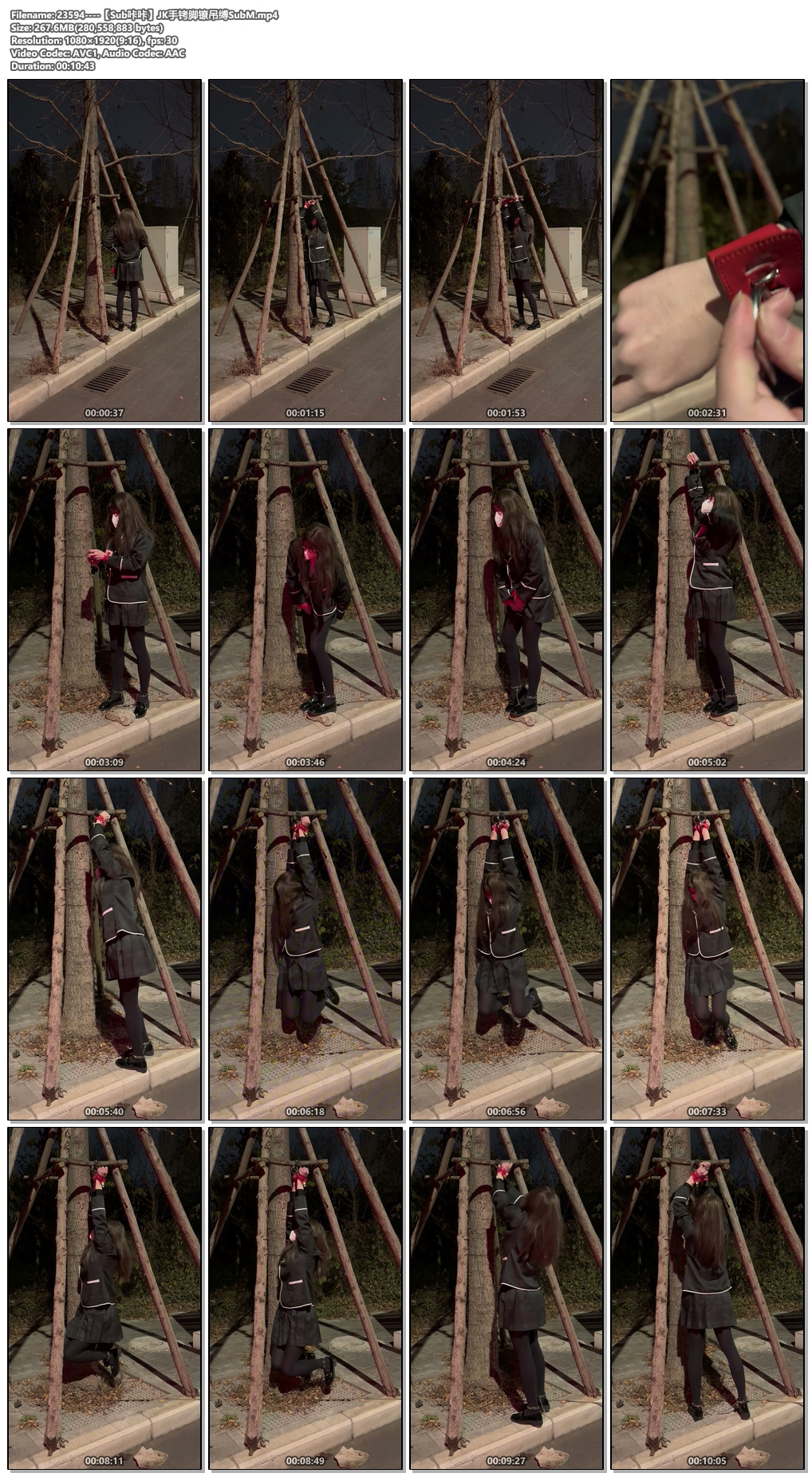 【Sub咔咔】户外JK头顶背铐电到抽搐SubM