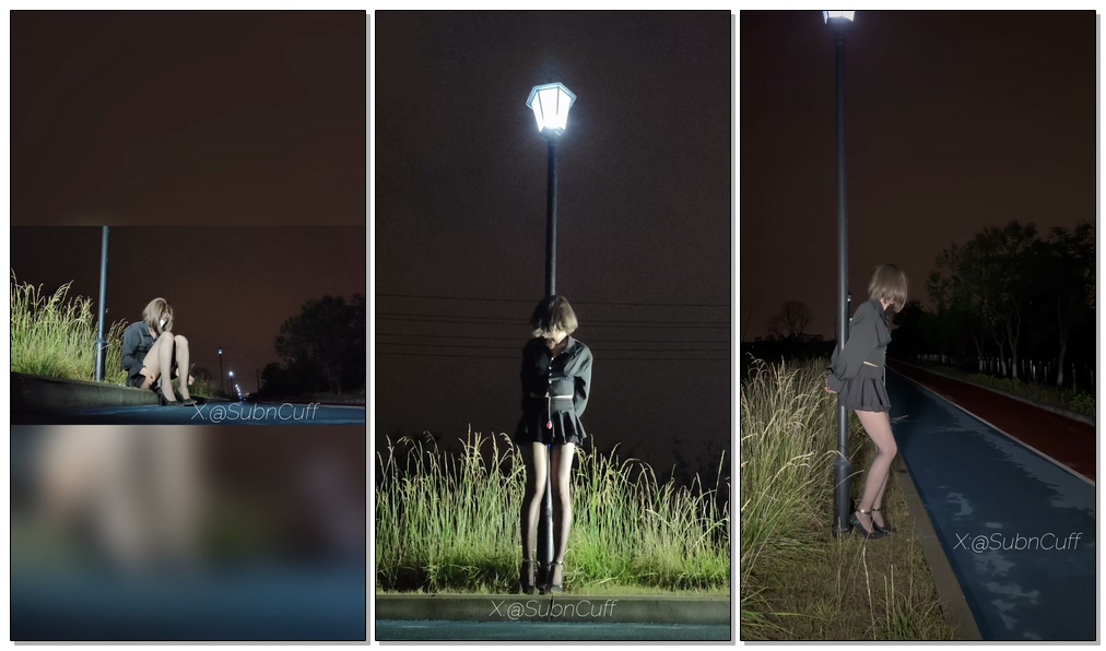 【Sub咔咔】户外定时锁手铐脚镣背铐在路灯下SubM