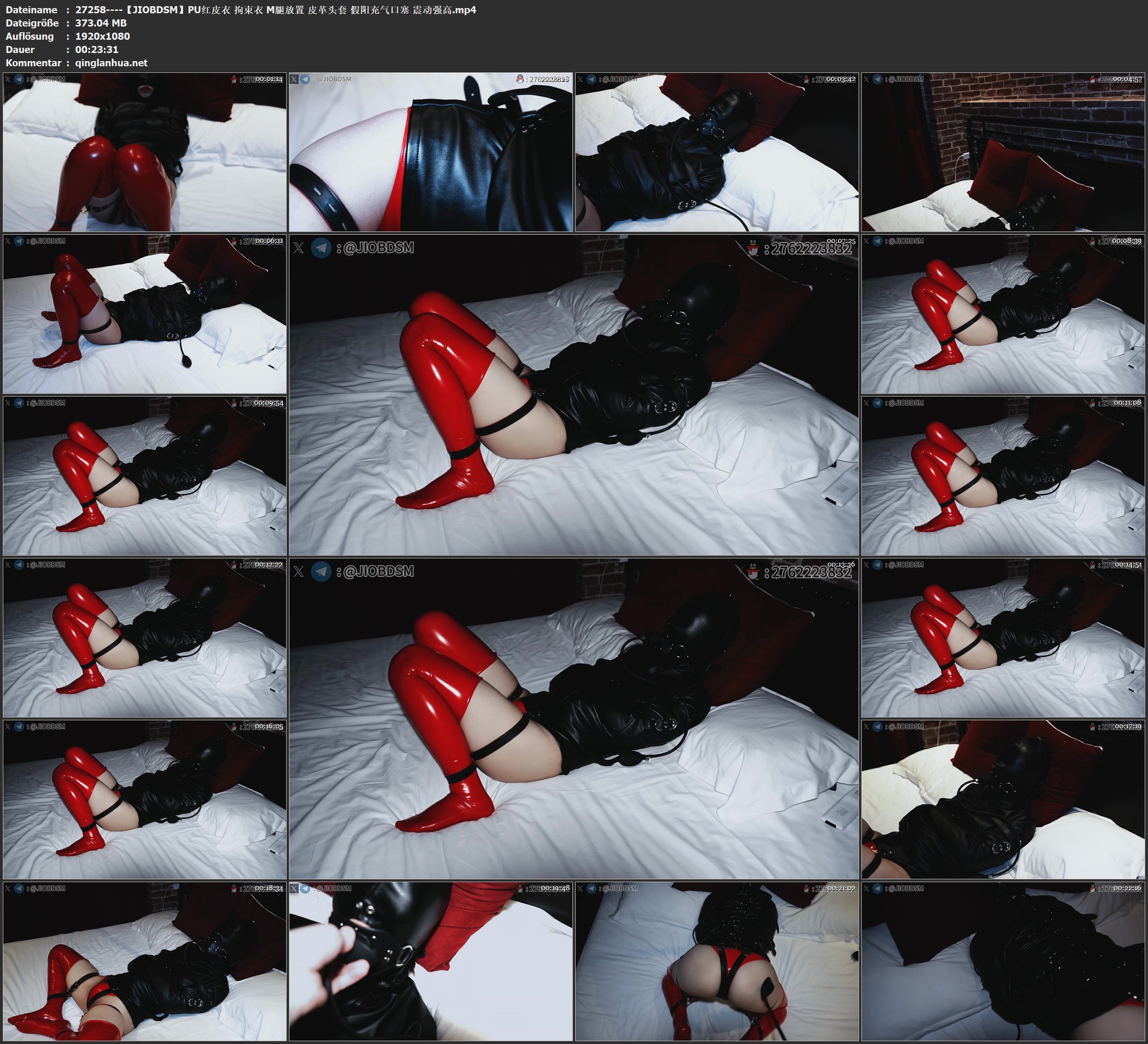 【JIOBDSM】PU红皮衣 拘束衣 M腿放置 皮革头套 假阳充气口塞 震动强高