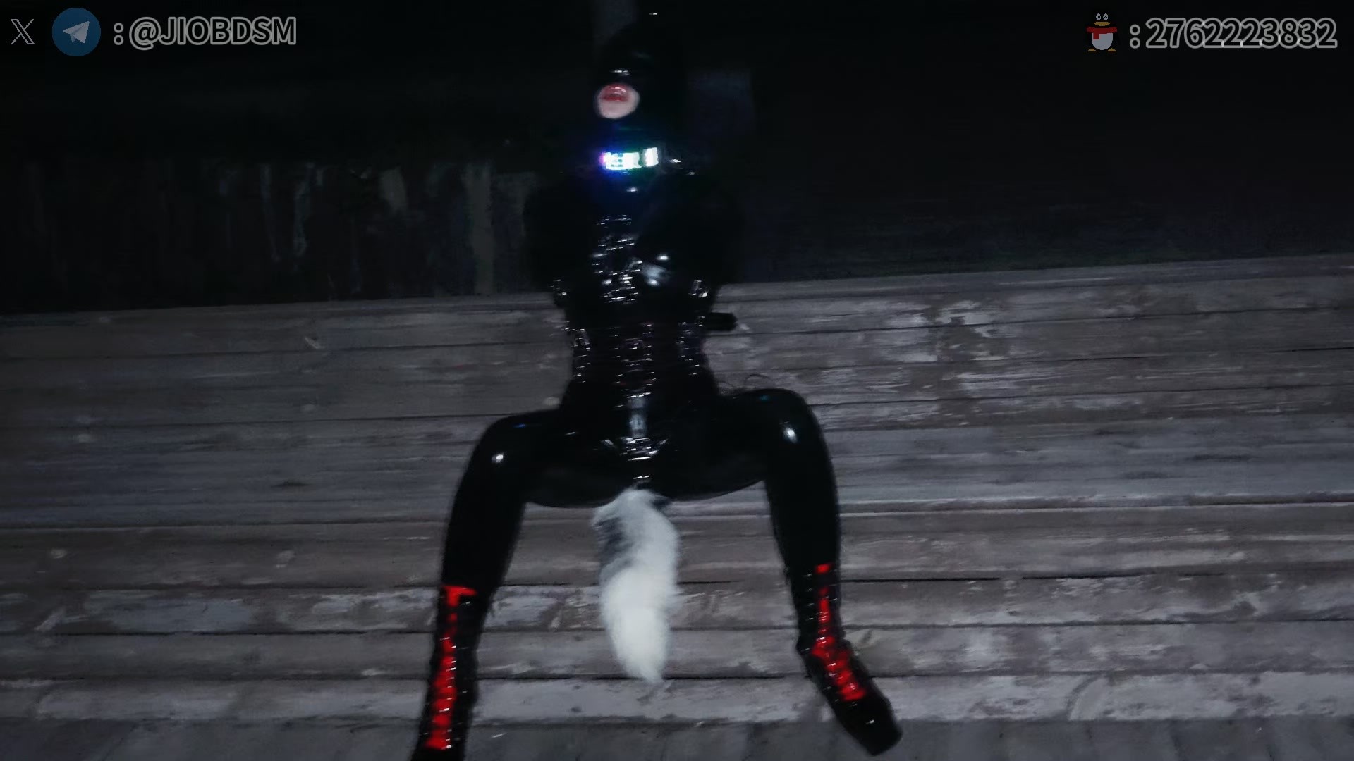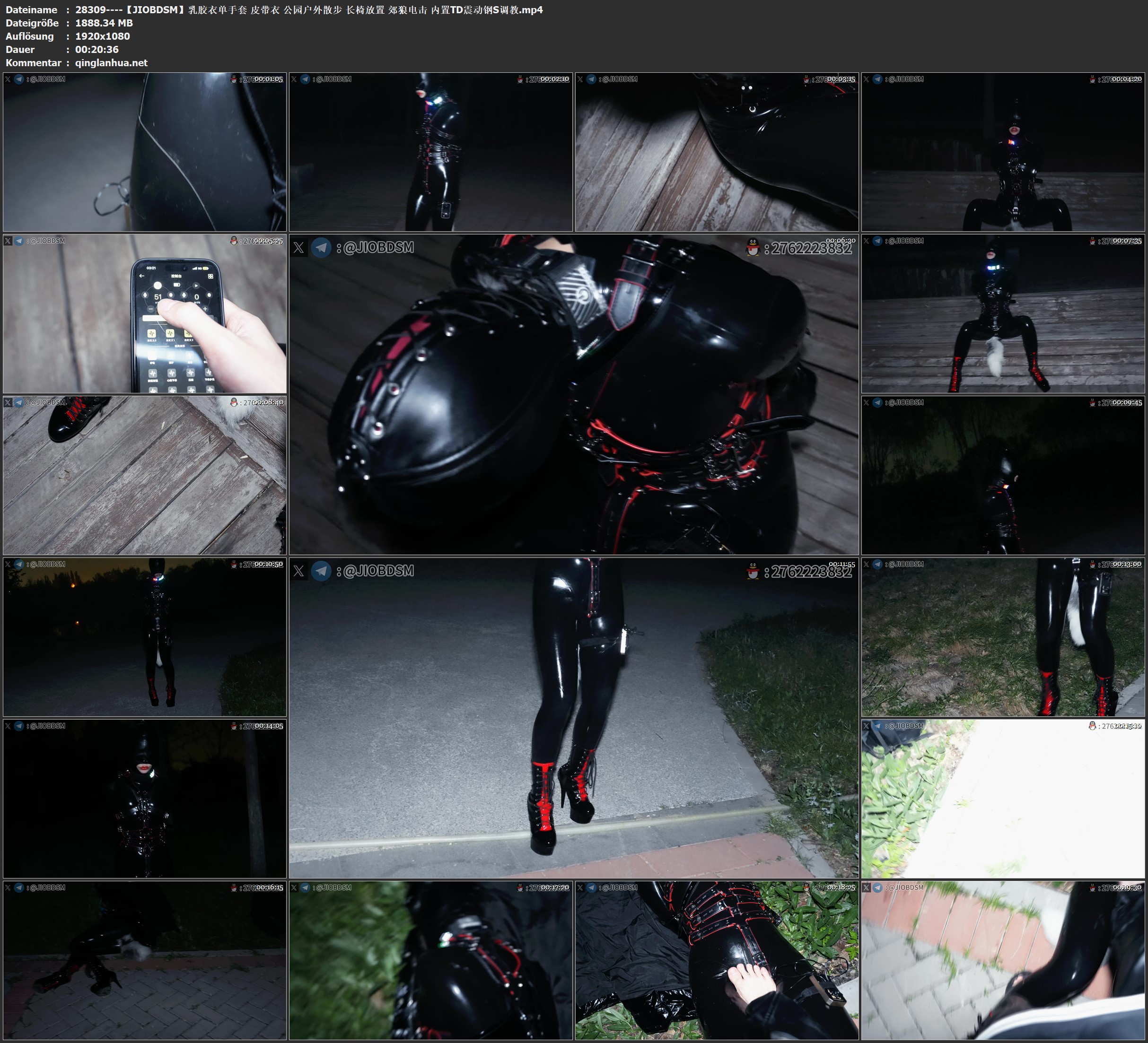 【JIOBDSM】乳胶衣单手套 皮带衣 公园户外散步 长椅放置 郊狼电击 内置TD震动钢S调教