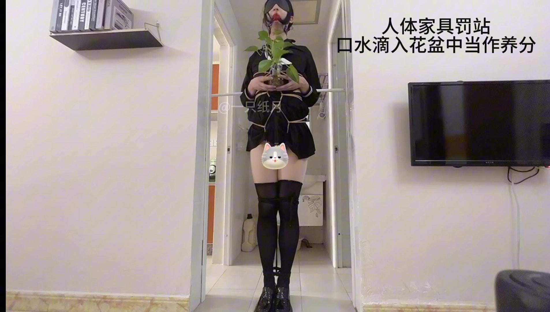最后固定成为花瓶家具 口球里的口水直接流入花瓶中