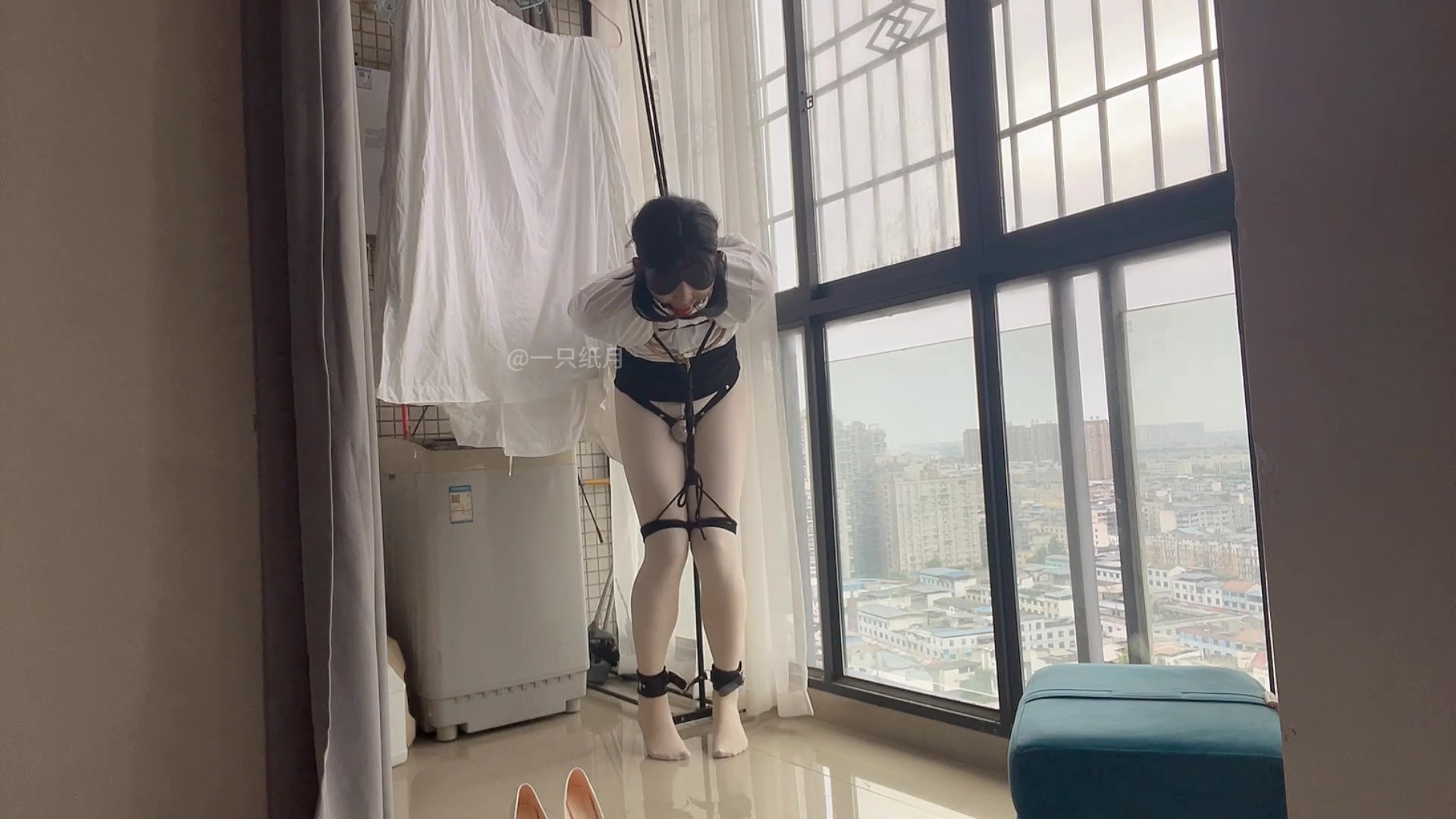 伪娘纸月被放置在阳台上 外面的人随时能看到屁股大开的纸月