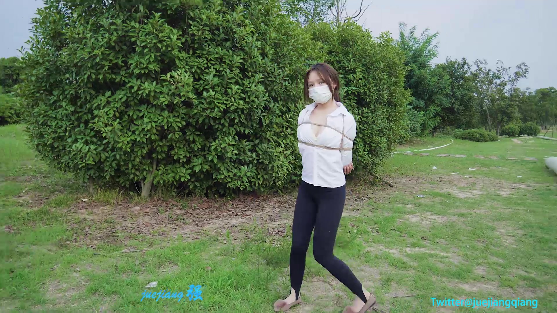 户外:日式捆绑散步 小开既害怕别人发现 又有点小激动 不断地作出各种姿势挑拨